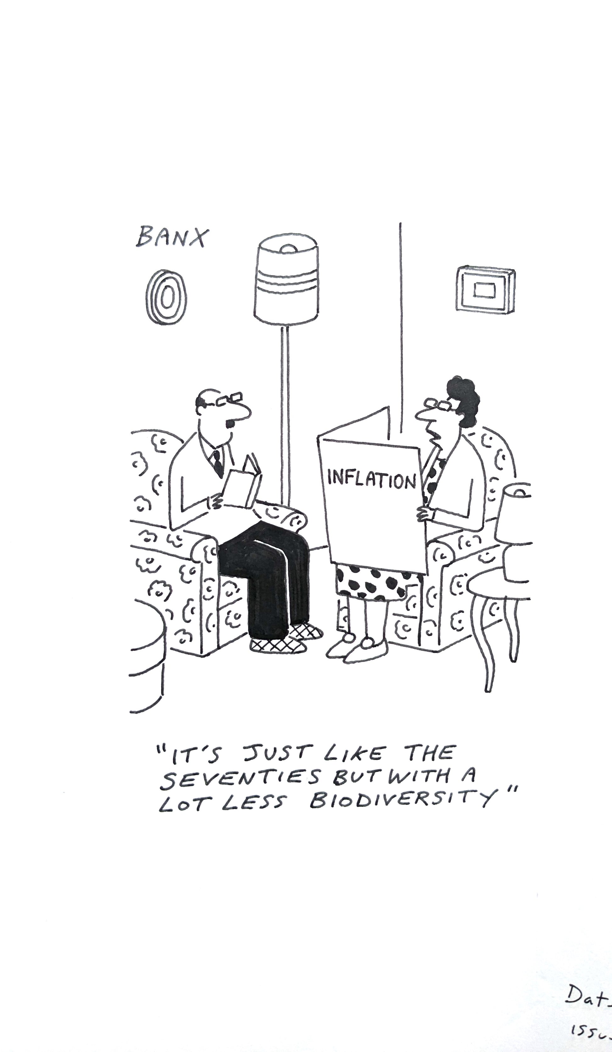 By award-winning cartoonist Jeremy Banks (Banx) for FT, Private Eye, Spectator, American Bystander, Vice, Wall St Journal. ‘A beacon of negativity'.